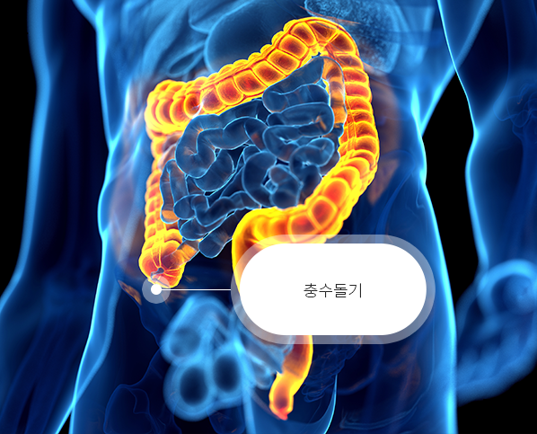 맹장의 경우 길이는 5~6cm 정도로 아주 작습니다. 대부분 충수라고 하는 작은 돌기와 같은 짧고 얇은 주머니를 가지고 있는 것으로 알려져 있는데요. 맹장의 경우 큰 창자에 있는 내용물이 작은 창자로 역류하지 못하도록 하는 기능을 하고 있다는걸 알고 계신가요!? 이러한 충수는 소화 기능을 가지고 있지는 않지만 림프 조직이 많이 존재하고 있기 때문에 감염에 대항하는 역할을 하는 것으로 알려져 있습니다.