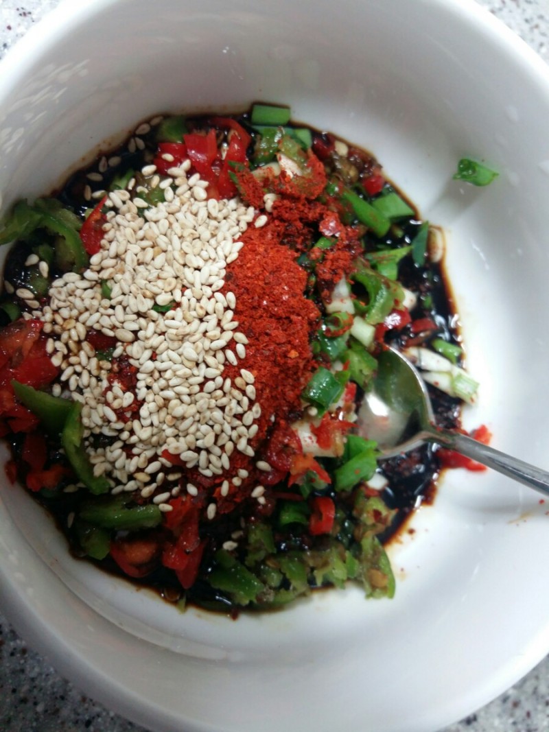 진간장 4스푼.고춧가루 반스푼.다진쪽파.