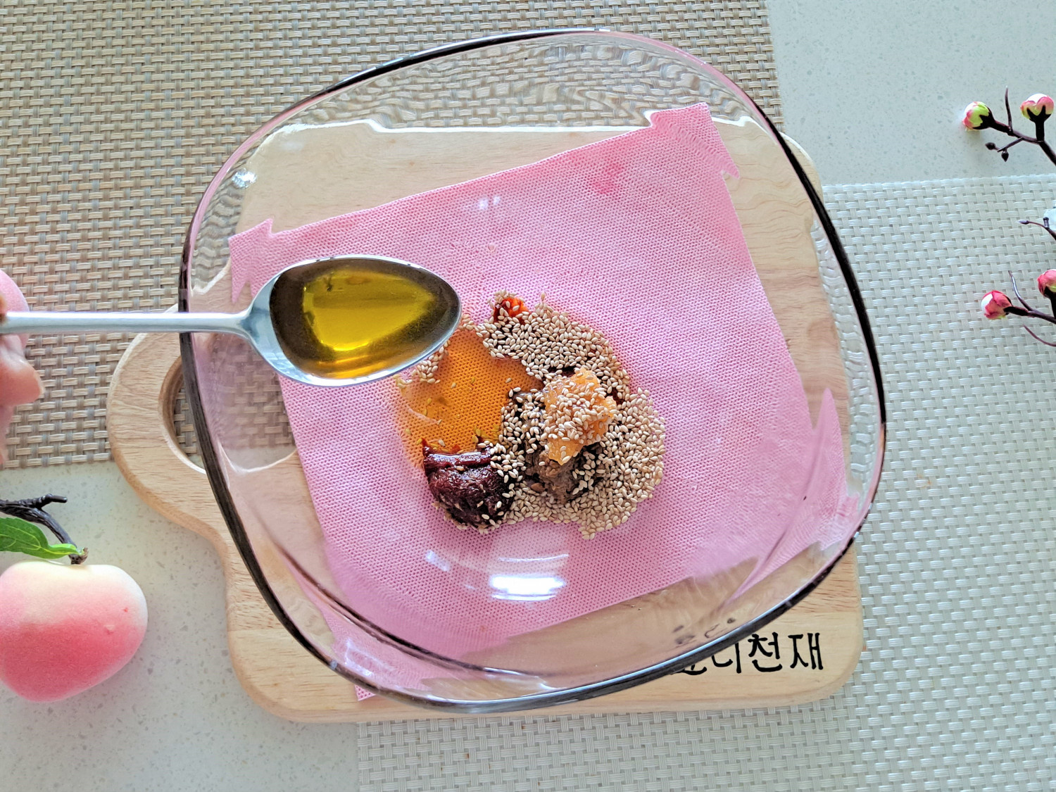 액젓 반스푼.참기름.통깨.