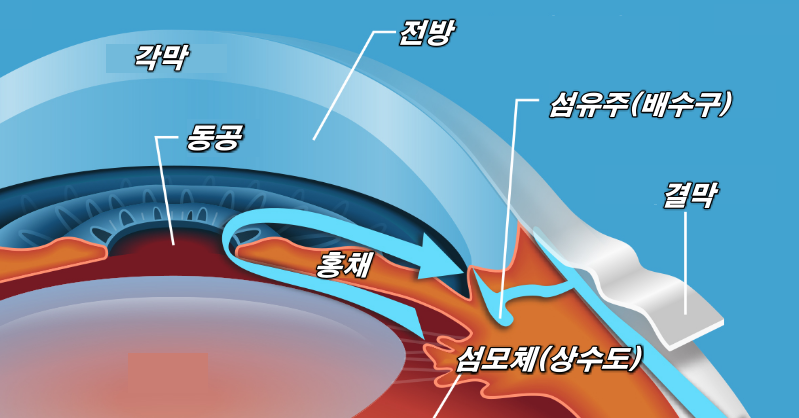 방수는 우리 눈을 순환하면서 안구의 압력을 일정하게 유지해 주고, 안구 조직에 영양분을 공급하는 역할을 합니다. 만약 방수의 순환이 원활하게 이루어지지 않거나 방수가 과다하게 분비되는 경우 안압이 높아질 수 있다는걸 알고 계시면 좋을것 같습니다.