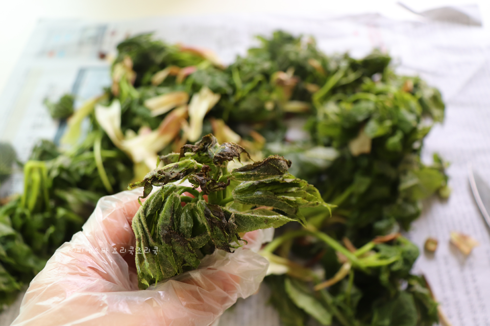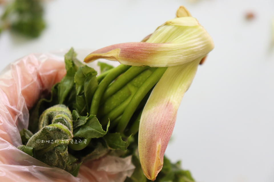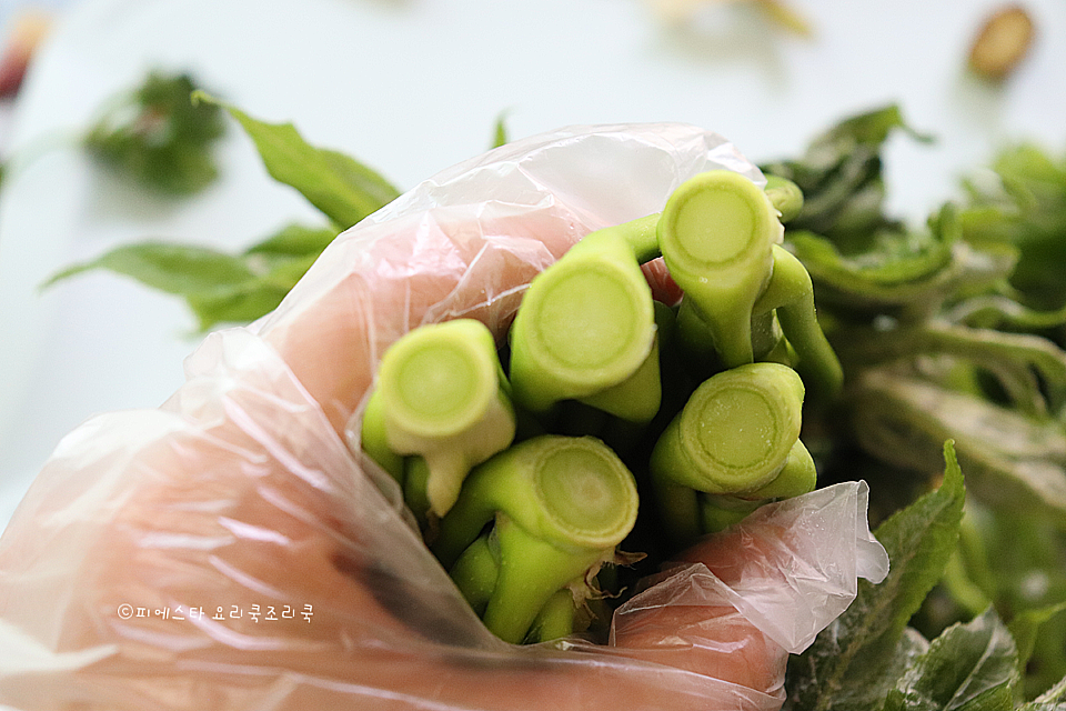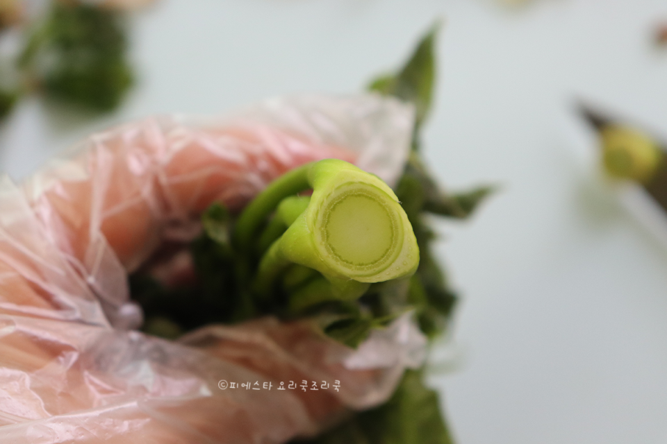 2. 잎은 쉽게 벗겨져서 손질이 쉬워요. 영상으로 보시면 더 쉬우실 거예요. 간단하죠? 잎도 쉽게 제거되어서 어렵지 않은 봄나물 손질이랍니다.